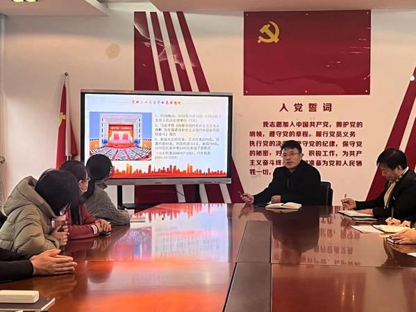 2022年12月9日,基础教学部党支部在行政楼201会议室组织开展学习宣传贯彻党的二十大精神之《奋进新征程 谱写新华章 为全面建设现代化职业学校而团结奋斗》专题党课,会议由支部书记刘庆根同志主持,支部20名党员参加了会议。