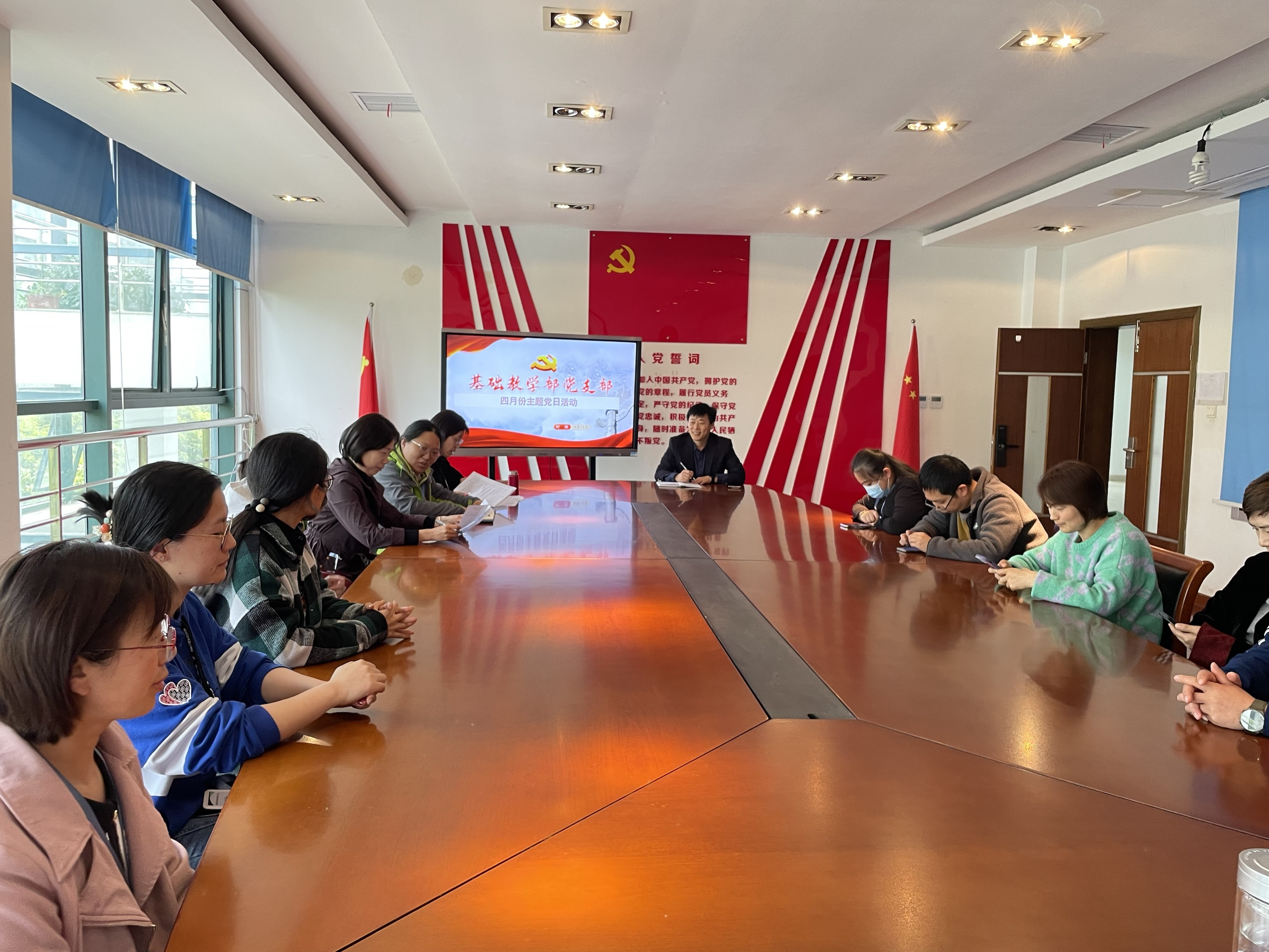 2023年4月13日,基础教学部党支部组织开展四月份主题党日活动,会议由支部书记刘庆根同志主持,支部16名党员参加了会议。