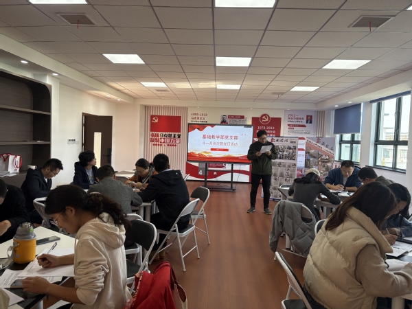 2025年11月14日,基础教学部党支部组织召开11月份主题党日活动,本次学习主题是“学习贯彻党的二十届四中全会精神”。会议由支部副书记欧阳仁蓉同志主持,支部全体党员参加。