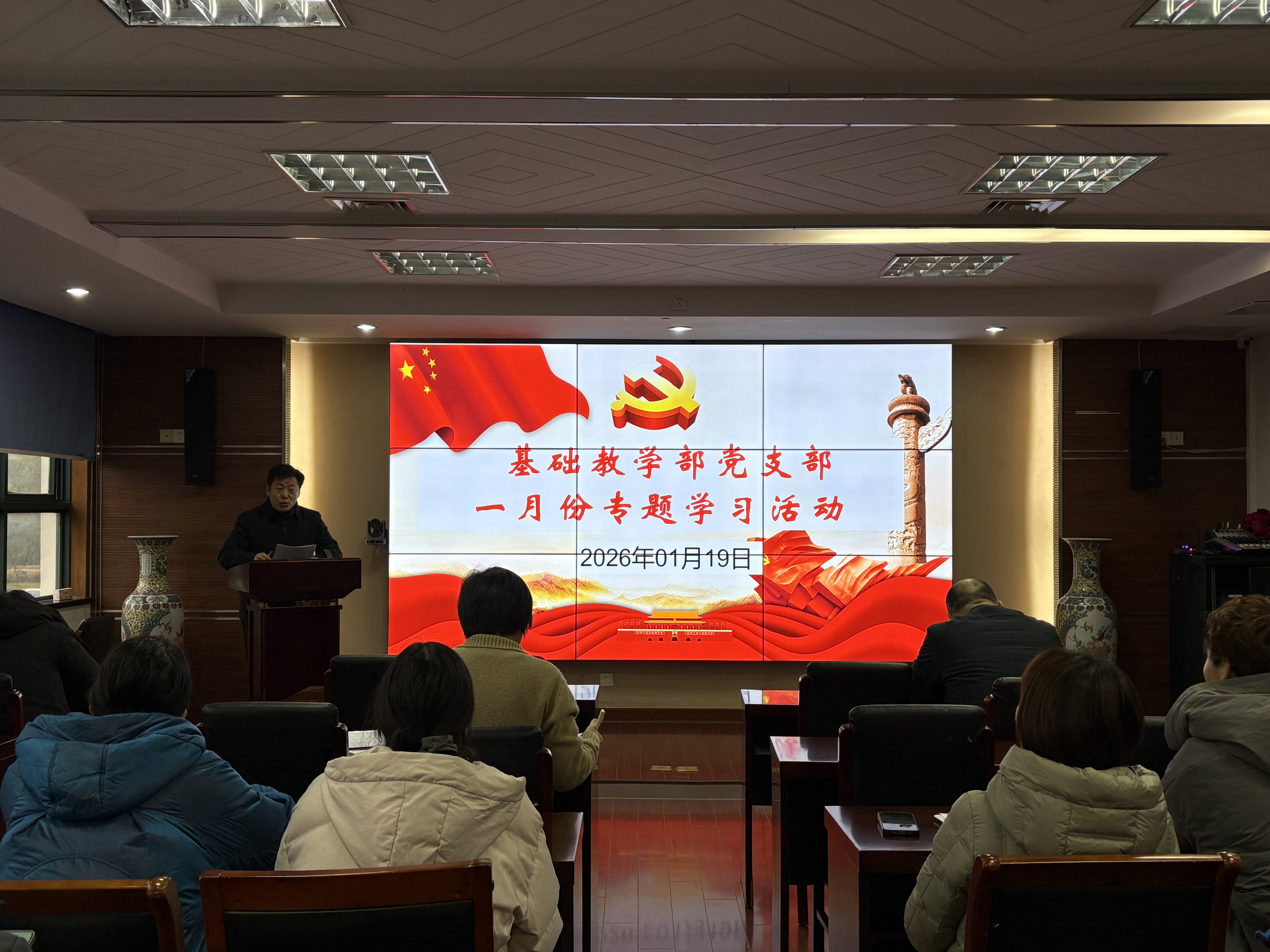 2026年1月19日,基础教学部党支部组织召开1月份主题党日活动,本次学习主题是“学习贯彻党的二十届四中全会精神”。会议由支部书刘庆根同志主持,支部全体党员参加。